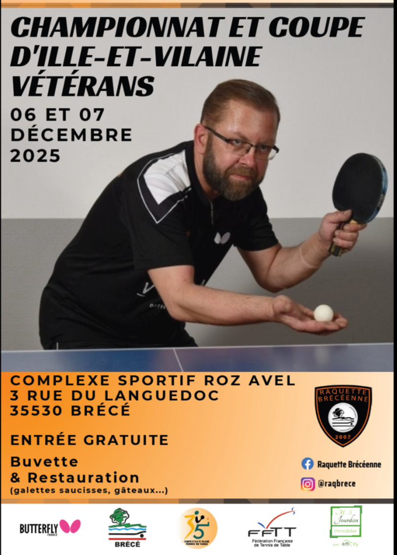 Le club de BRECE est heureux de vous accueillir comme tous les ans pour la 18ème édition, les Samedi 6 et Dimanche 7 décembre 2025 pour l'organisation de la phase départemantale de la Coupe Vétérans et les championnats 35 vétérans individuels. La compétition aura lieu dans le Complexe Sportif, rue du Languedoc à BRECE. Documents disponibles: - règlement de la Coupe vétérans - règlement du championnat vétérans individuels> Vous trouverez donc ci-dessous les documents à renvoyer au Comité pour l'engagement à la coupe et au championnat individuels vétérans.Les engagements sont à retourner pour le 28 novembre 2025 - formulaire d'engagement Coupe et Championnat Individuel 35 Vétérans (PDF) - formulaire d'engagement Coupe et Championnat Individuel 35 Vétérans (Excel) - Courrier relatif à l'engagement des joueurs au Championnat d'Ille-et-Vilaine Vétérans - Courrier relatif à l'engagement des équipes à la Coupe Vétérans